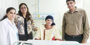 , she became symptomatically better and her CA-125 also came down. Then she underwent complete surgery for cancer ovary that is total radical hysterectomy, bilateral oopherectomy, omentectomy and lymph node dissection. She was stable after surgery. Her histopath report showed tumor in omentum . She was given 3 more cycles of chemotherapy. Her final investigations after chemotherapy are awaited.